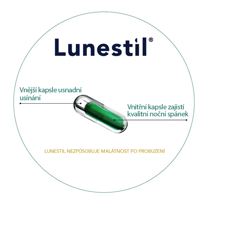 Lunestil je doplněk stravy v podobě inovativních duokapslí s technologií zpožděného uvolňování. Obsahuje látky přírodního původu určené pro klidný a zdravý spánek.